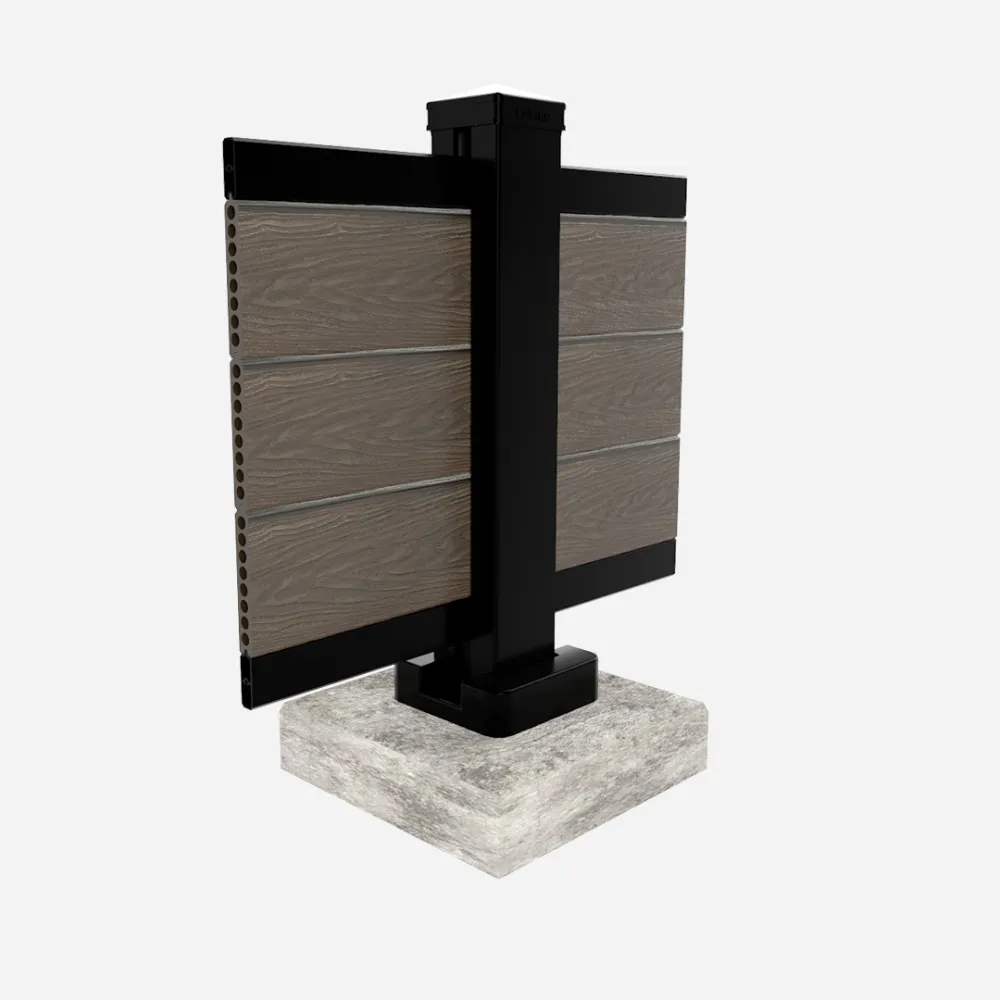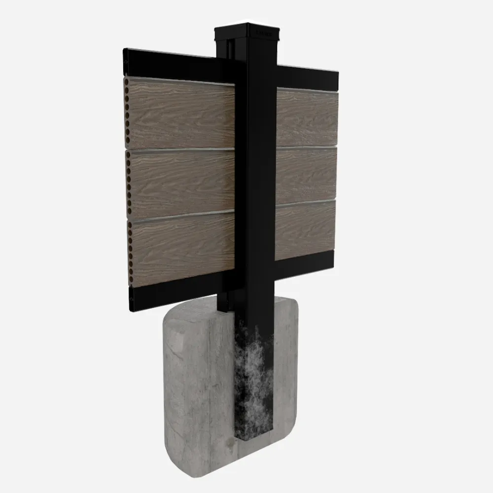 - Attaching the Main Fence Post: Once the concrete has cured, the main fence post is secured to the base plate of the aluminium pile.