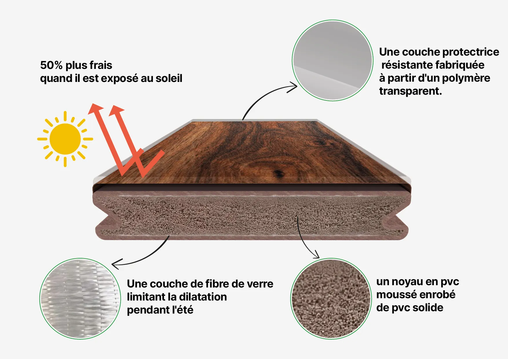 La durabilité étonnante de ce matériau de terrasse le rend parfait pour une utilisation dans des applications résidentielles ou commerciales.