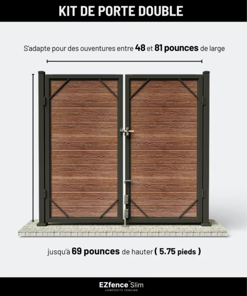 Kit de Porte Double Ajustable 48-81 po et hauteur 5pi9po | Ezfence Slim