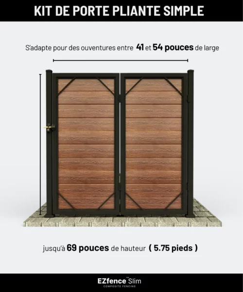 Kit de porte pliante simple ajustable 41 à 54 po et hauteur 5 pi 9 po | Ezfence Slim