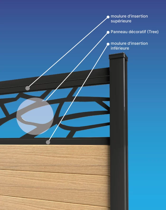 Ce panneau décoratif est non seulement esthétique mais aussi facile à installer. Il se glisse simplement entre les poteaux et remplace deux planches de clôture d’origine, vous permettant de renouveler votre clôture sans effort.