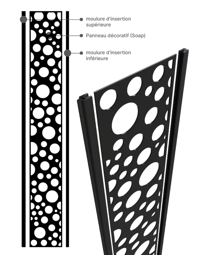 Ce panneau décoratif est non seulement esthétique mais aussi facile à installer. Il se glisse simplement entre les poteaux et remplace deux planches de clôture d’origine, vous permettant de renouveler votre clôture sans effort.
