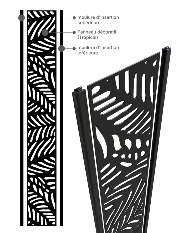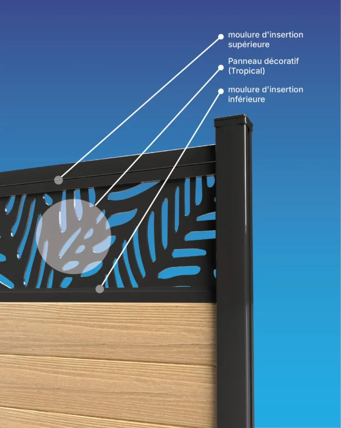 Ce panneau décoratif est non seulement esthétique mais aussi facile à installer. Il se glisse simplement entre les poteaux et remplace deux planches de clôture d’origine, vous permettant de renouveler votre clôture sans effort.