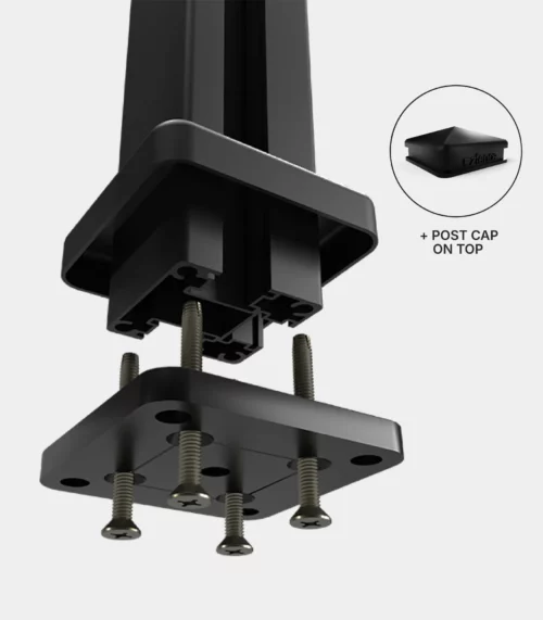 Poteau en ligne complet pour montage sur surface – Ezfence Slim 2.5″x2.5″ avec une longueur de 74 po
