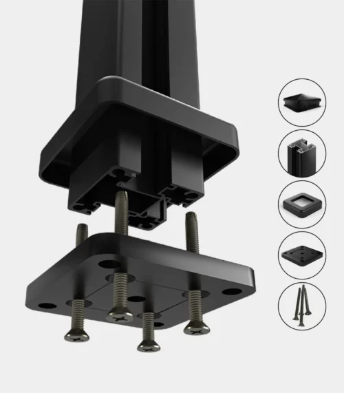 Poteau de coin complet pour montage sur surface – Ezfence Slim 2.5″x2.5″ avec une longueur de 74 po