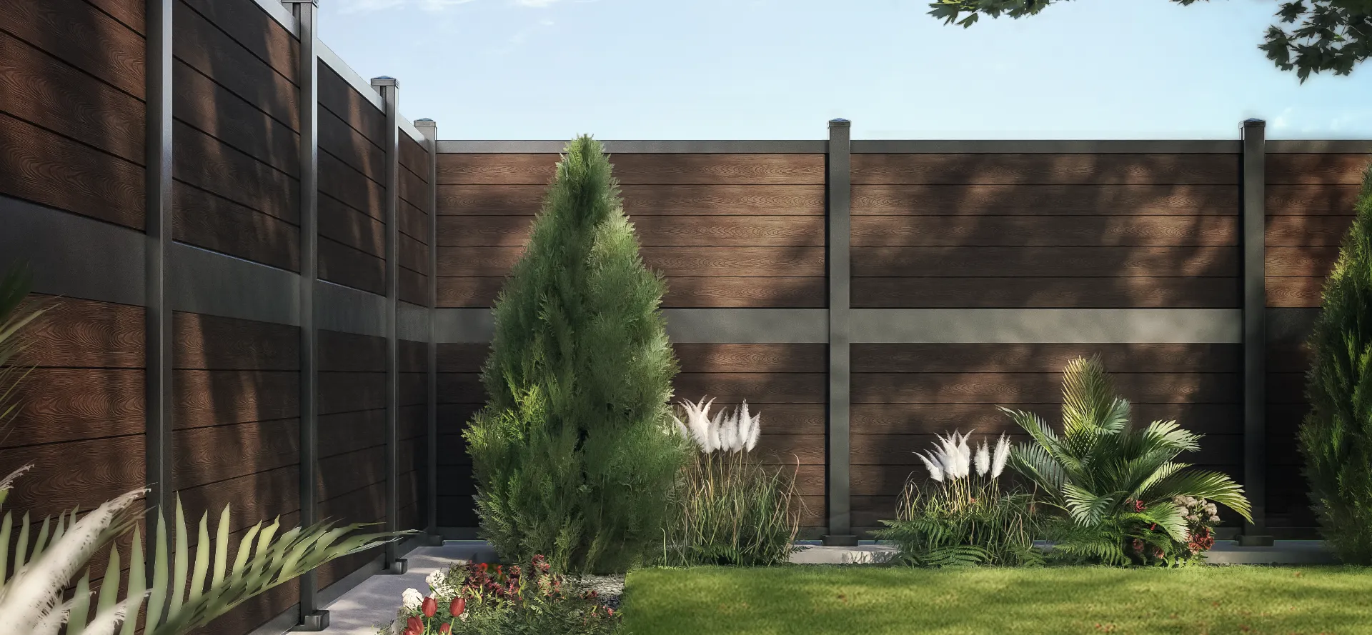 Alternative durable à la clôture bois : panneaux en composite pour extérieur.