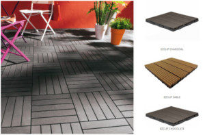 Nos nouvelles tuiles en composite Ezclip sont idéales pour les terrasses, balcons, patios, condos. La tuile patio Ezclip est un choix idéal pour les gens qui ne désir pas avoir d’entretien. La Ezclip donne un nouveau look exceptionnel à des surfaces craquées et fissurées. Cette tuile est facile à installer et ne nécessite absolument aucun outil.  Elle sont fournis avec un système d’attaches en clips déjà intégré dans la tuile. Cela rend l’installation encore pus facile. La Ezclip est aussi drainante pour que l’eau s’écoule sous la tuile afin de garder votre surface au sec. De plus,  elle est amovible pour les gens qui ne peuvent pas installer un produit permanent en raison de la réglementation de leur établissement. Vous déménagez? Aucun problème! Emportez vos Ezclip avec vous! Aussi faciles à enlever qu’à installer. Cela permet donc de la transporter aisément lors de vos déménagements.