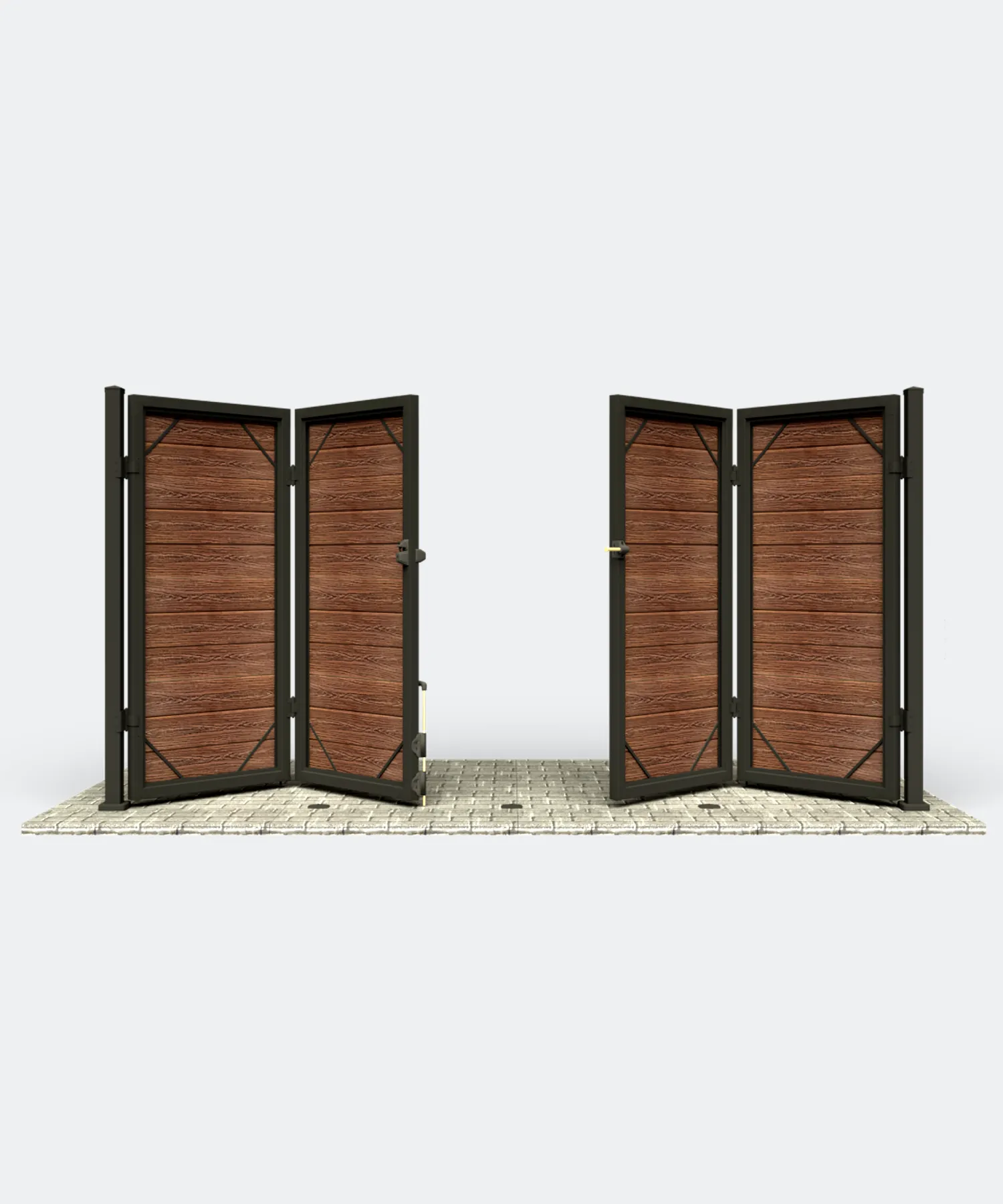 We offer four distinct configurations to fit your space: our Single Gate kits are perfect for standard walkways, while the Double Gate kits provide wider access for driveways and equipment. For properties with limited space, our Single Folding Gate and Double Folding Gate kits offer an innovative “bi-fold” design that minimizes the swing arc, allowing for full functionality in tight areas where a traditional gate wouldn’t fit.