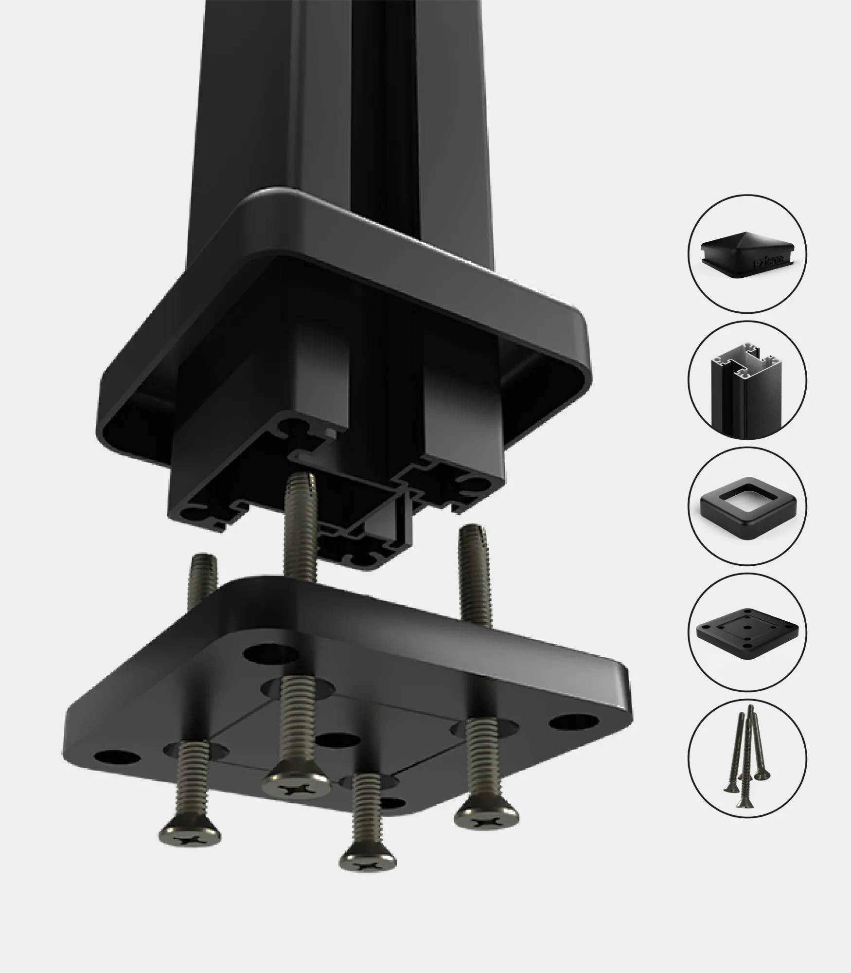 Full Ezfence Slim Corner Post for Surface Mount – 2.5″x2.5″ with 74″ Length