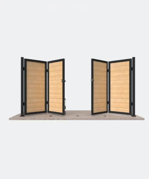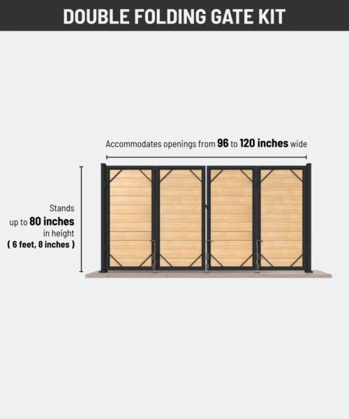we provide an extensive selection of accessories designed to complement our EzFence Composite System. These accessories encompass single gates, double gates, single folding gates, and double folding gates. Enhance the appearance of your home’s fencing by opting for our top-notch composite gate kits. Our Single Folding Gate Kit empowers you to fashion a customized gate that spans up to 52 inches in width and reaches a height of up to 6 feet. For broader coverage, our Double Fence Gate Kit extends up to 120 inches in width. Both kits are constructed using sturdy aluminum components, ensuring heightened strength and stability. Take advantage of our array of color choices to harmonize your composite fencing system and establish a unified aesthetic for your outdoor area. Place your order for a gate kit today to introduce both flair and functionality to your home’s fencing.