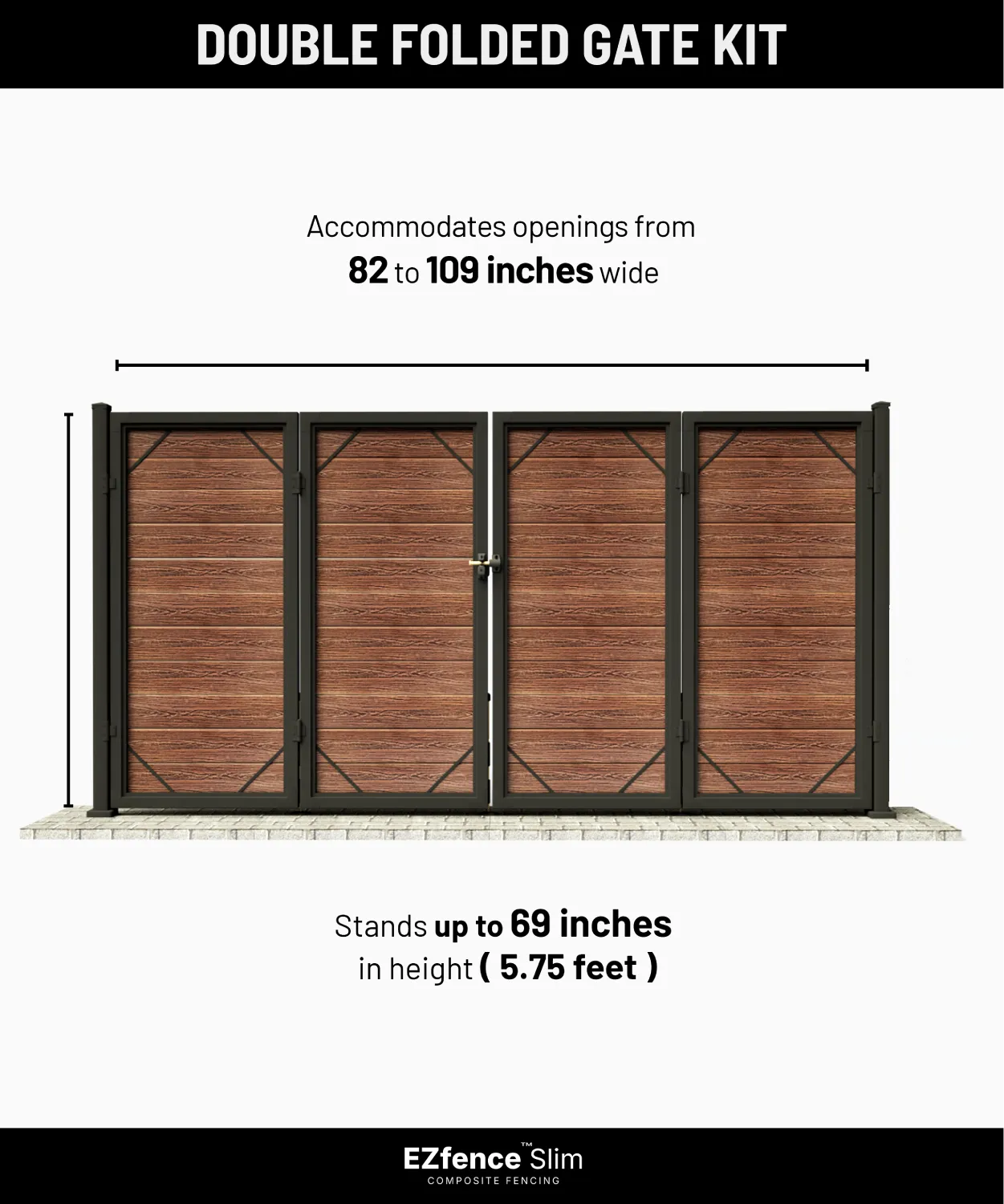 Engineered for adaptability, this double gate can be precisely adjusted to fit expansive openings, ranging from a substantial 82 inches up to 109 inches. With a height of 5 feet 9 inches, it seamlessly blends with your existing fence, providing a clean, cohesive look and robust security.