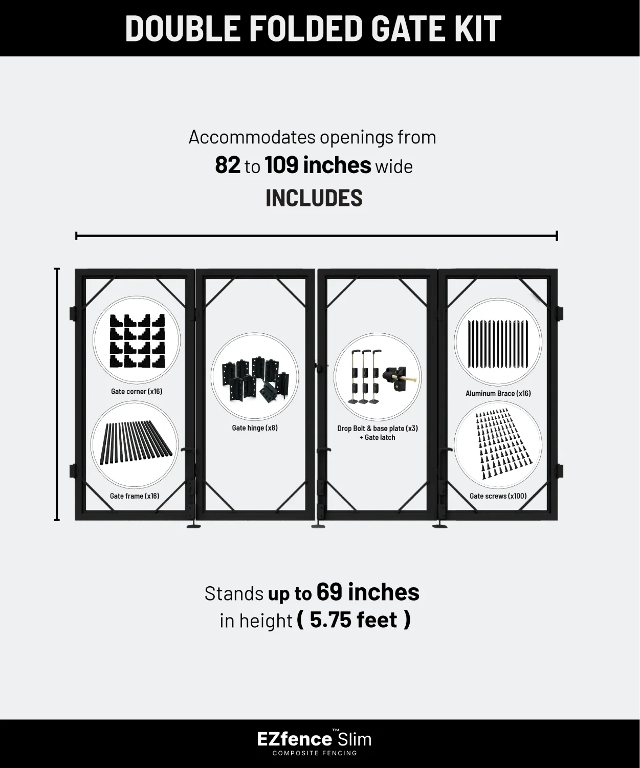 the EZfence Double Folding Gate Kit. This kit offers the perfect combination of security, style, and practicality, allowing you to install a gate in locations where space is at a premium. Its folding design means you can open up a wide entrance without the need for a large swing radius.