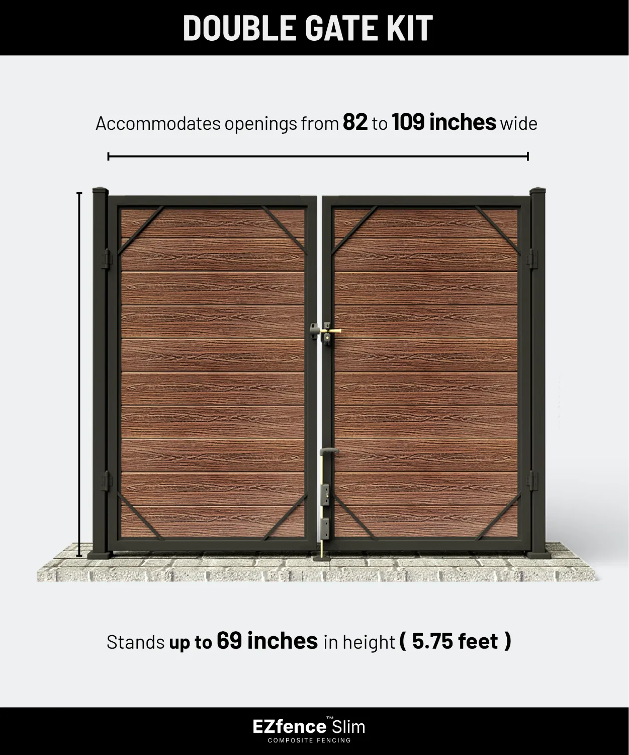 This kit is engineered for versatility, allowing you to easily adjust the width to precisely fit your space, from a generous 82 inches up to 109 inches. At a consistent height of 5 feet 9 inches, it integrates beautifully with your existing fence line, offering both robust security and a visually striking statement.