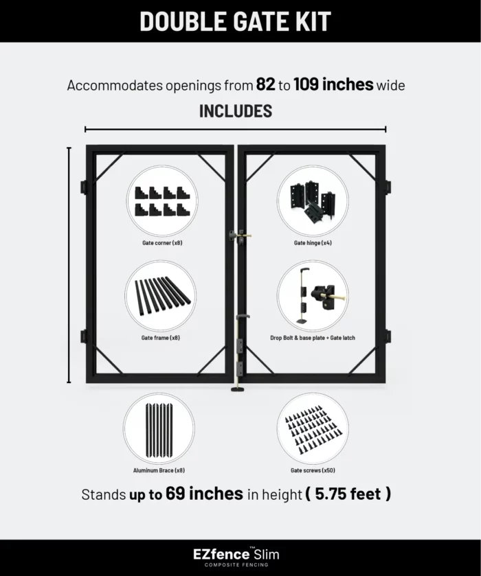 Create a Grand Entrance with the EZfence Slim Double Gate Kit with a maximum of Door Opening of 109 inch